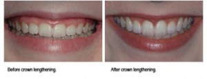 Occasionally there is extra gum tissue around teeth making them look unnaturally short. This is referred to as a gummy smile. Esthetic crown lengthening can be utilized to remove the excess tissue and restore a balanced, healthy looking smile. It is sometimes done in conjunction with lip repositioning.
